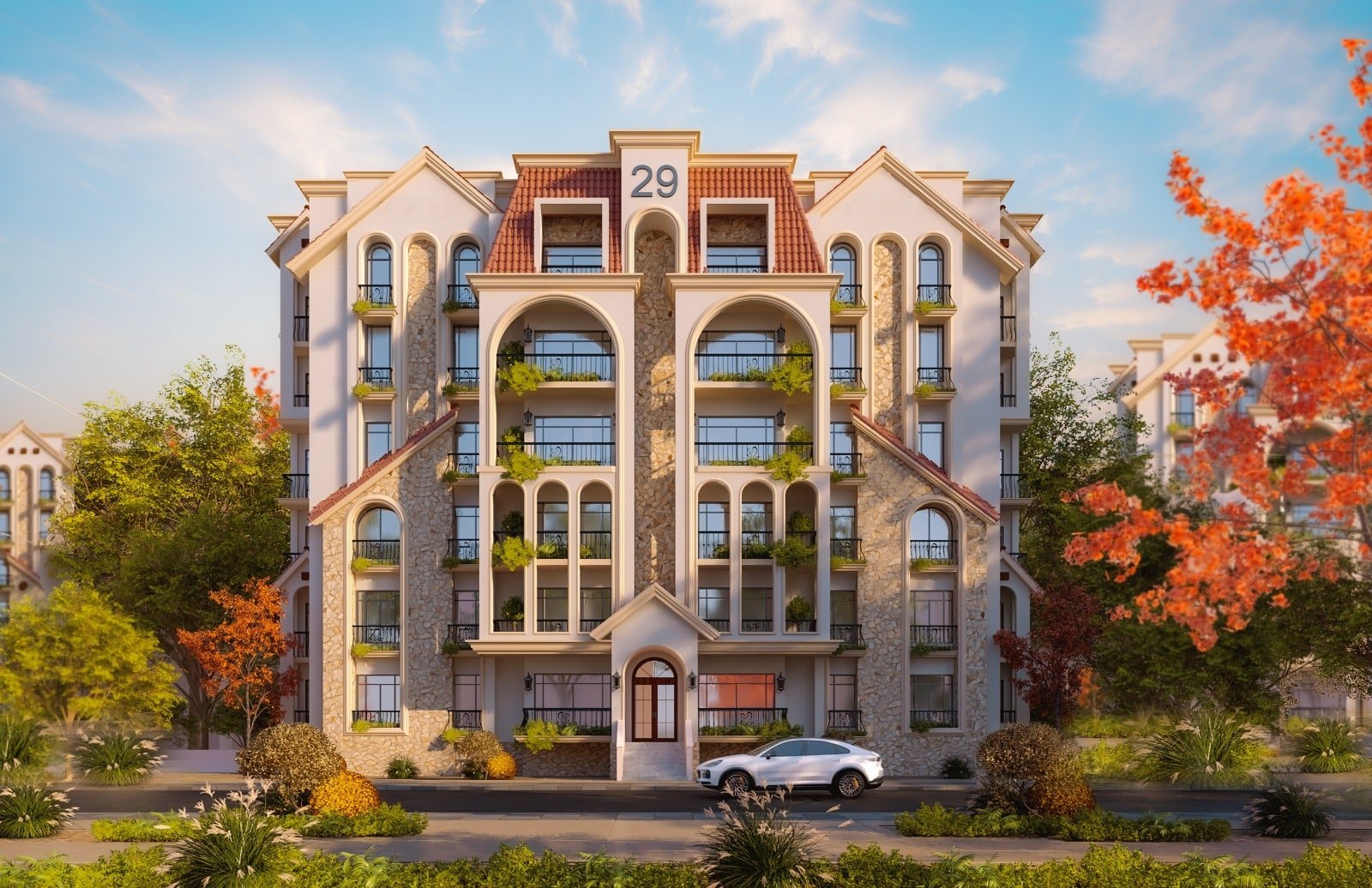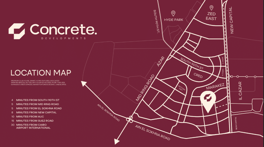 4. A Location in the Heart of the Future: The project is located in the Sixth Settlement, near 90th Street and the AUC, an area witnessing significant growth that guarantees an increase in your investment’s value.