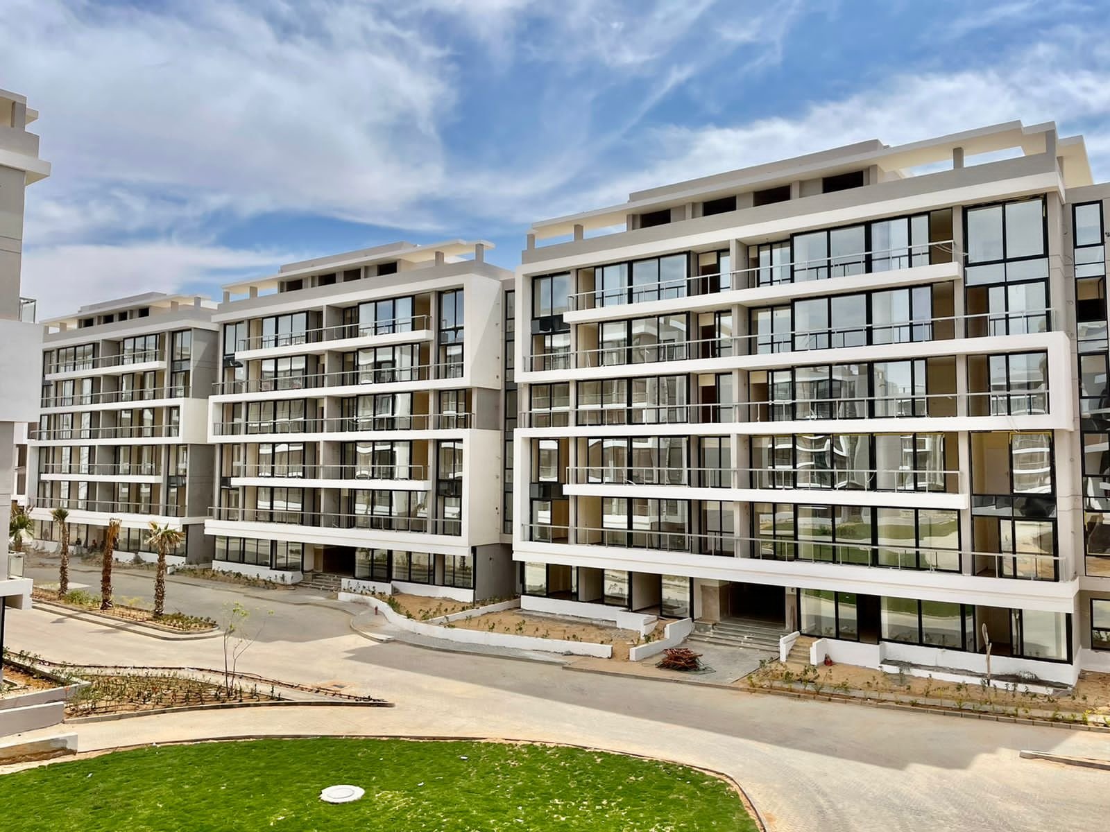 A perfect opportunity for luxury living or investment in a 145 m² apartment with a 64 m² garden inside Lake Yard Compound by Memaar Al Morshedy, featuring a practical design, spacious layout, and a stunning view.