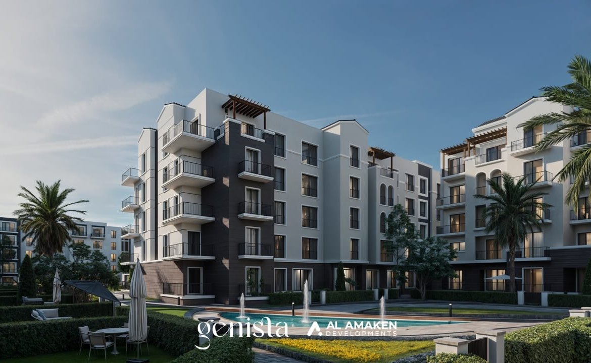 A north-facing apartment for sale at a bargain price in the most prestigious and distinguished compound, facing Al Rabwa, in the heart of Sheikh Zayed