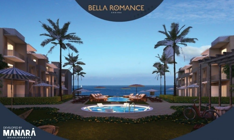يقع منتجع بيلارومانس علي البحر مباشرة بالعين السخنة علي طريق الزعفرانه منطقة طواحين الهواء بعد بورتو السخنة