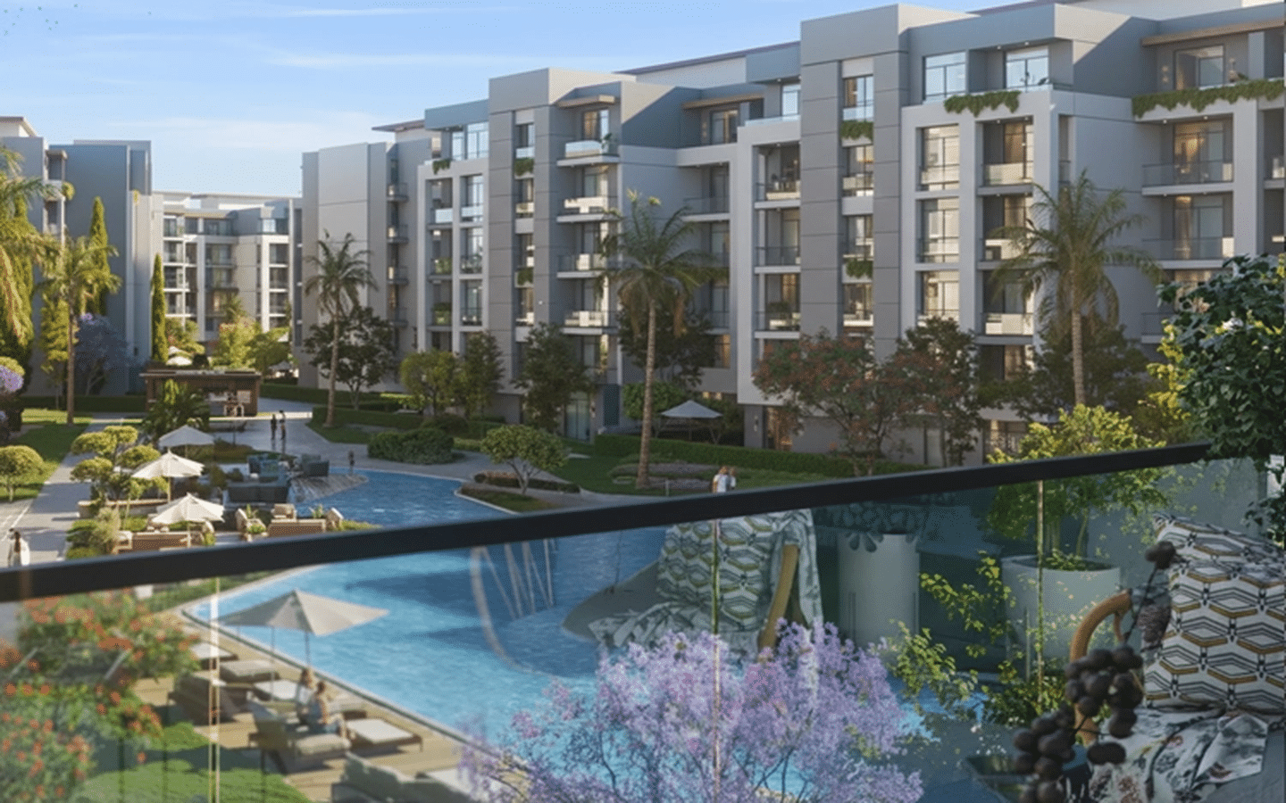 - حمامات سباحة: تتوزع حمامات السباحة في جميع أنحاء الكمبوند لتناسب جميع الأعمار.
