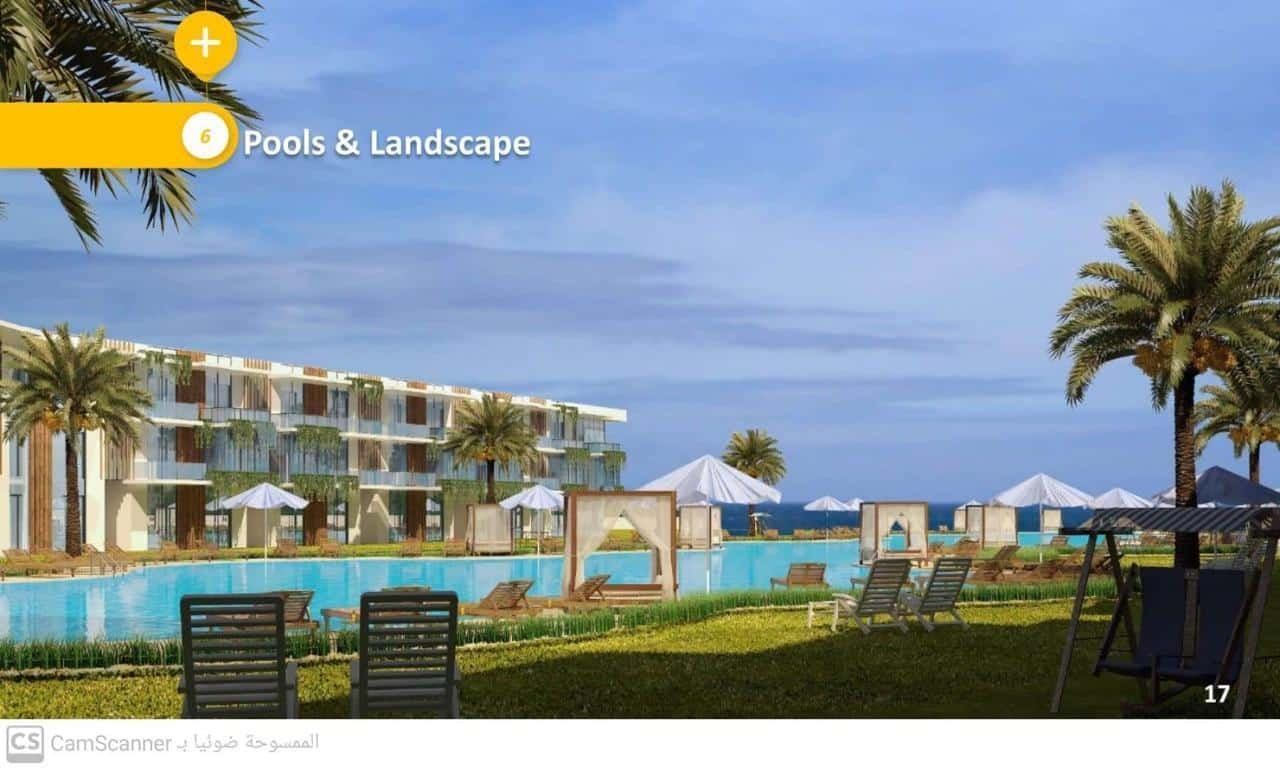 شاليه مميز بمساحة 60 م² وإطلالة رائعة على البحر وحمام السباحة في مدينة الجلالة، بالقرب من العين السخنة.