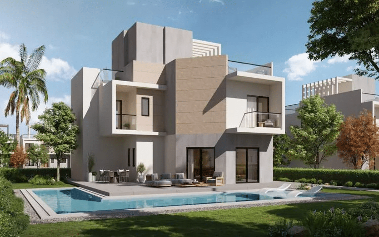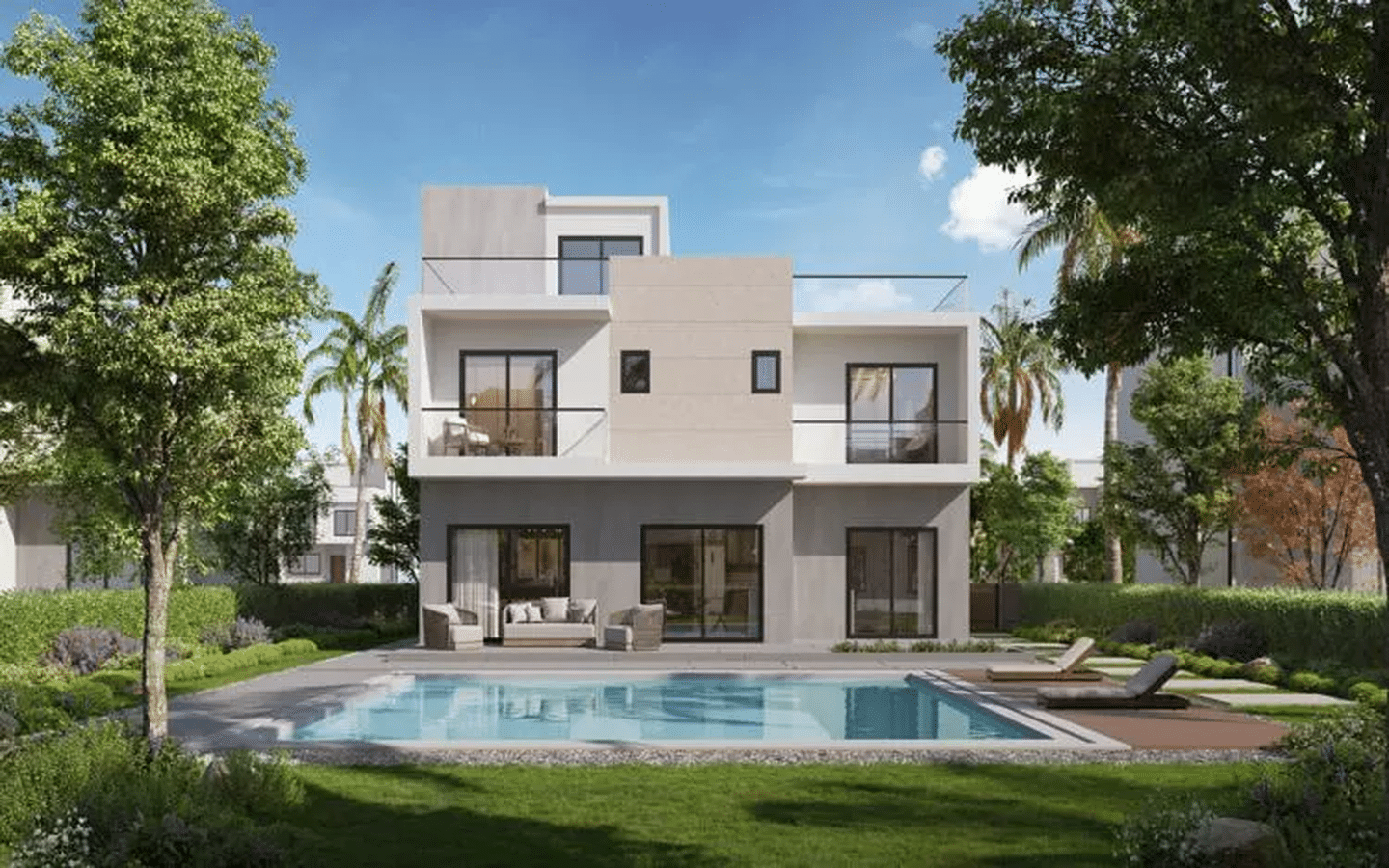 وحدة كورنر بخصوصية أعلى ومساحة جاردن كبيرة في مشروع فيلات متكامل الخدمات.